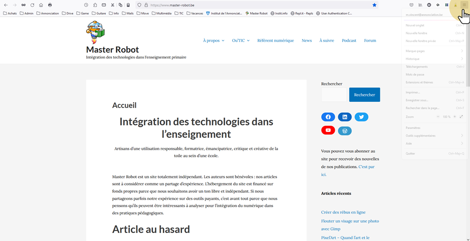 Accéder aux paramètres en cliquant sur le bouton en haut à droite du navigateur.