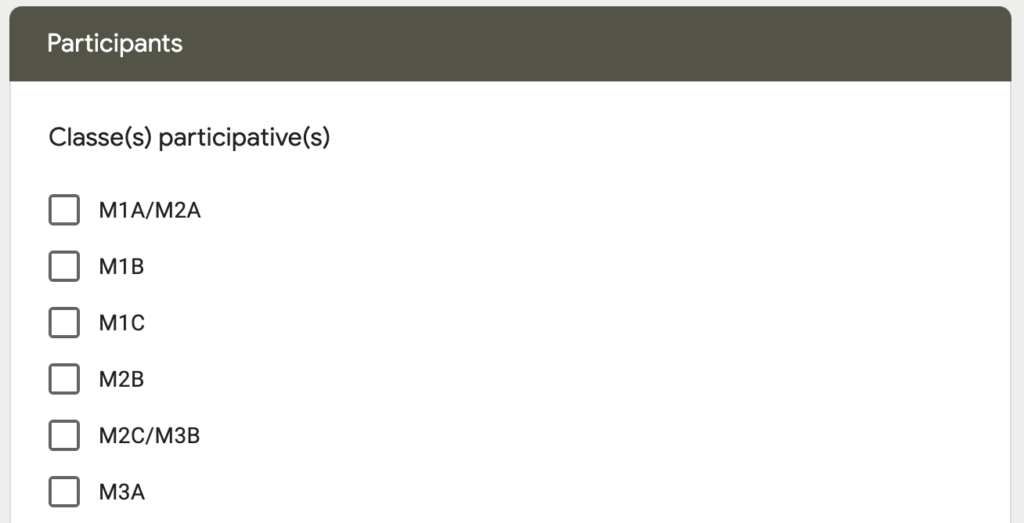 Comme je l’expliquais plus haut, les relevés peuvent se faire avec des classes de maternelles. Pour cela, j’ai réalisé un formulaire en ligne. Je ne vous donne pas accès à ce formulaire, mais je partage avec vous le contenu un peu plus bas sous forme d’images. Avec les maternelles, c’est l’enseignante qui coche les éléments, mais elle le fait avec sa classe. Elle pose les questions à voix haute et fait s’exprimer les élèves sur leurs observations. En fin de formulaire, des photos peuvent être jointes au formulaire. Les réponses sont récupérées dans un tableur, ce qui permet par la suite de les traiter.