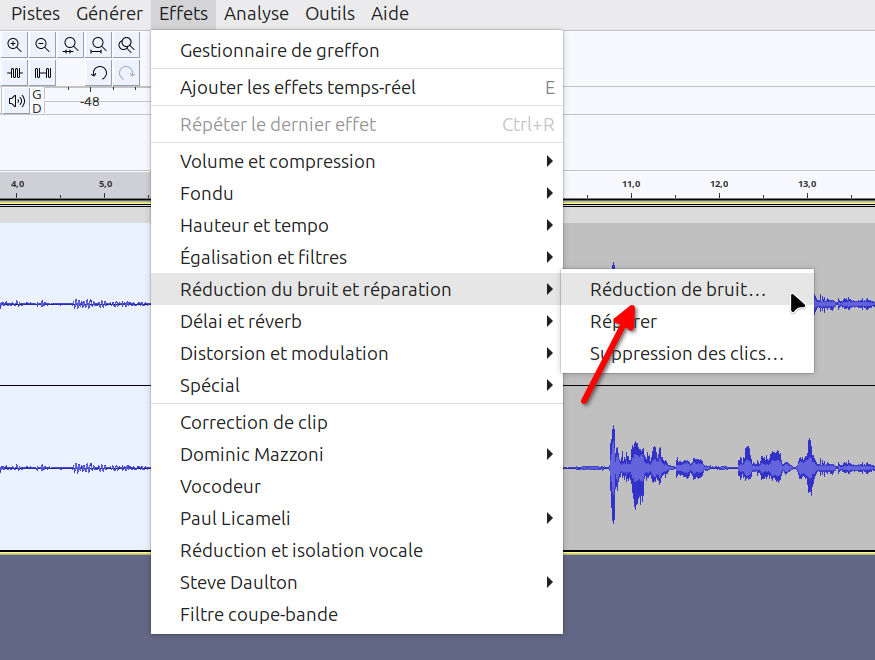 Effets > Réduction du bruit. - Cliquez sur Prendre le profil du bruit.