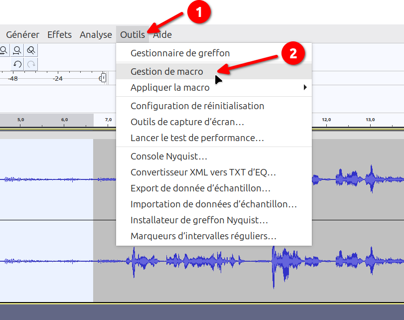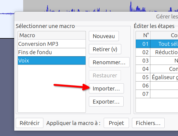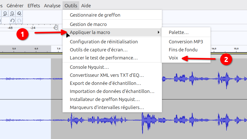 Lorsque l’on travaille avec plusieurs fichiers audio — ce qui est souvent le cas avec une classe entière — il peut vite devenir fastidieux d’appliquer les mêmes traitements manuellement à chaque enregistrement. C’est là que les macros entrent en jeu.
